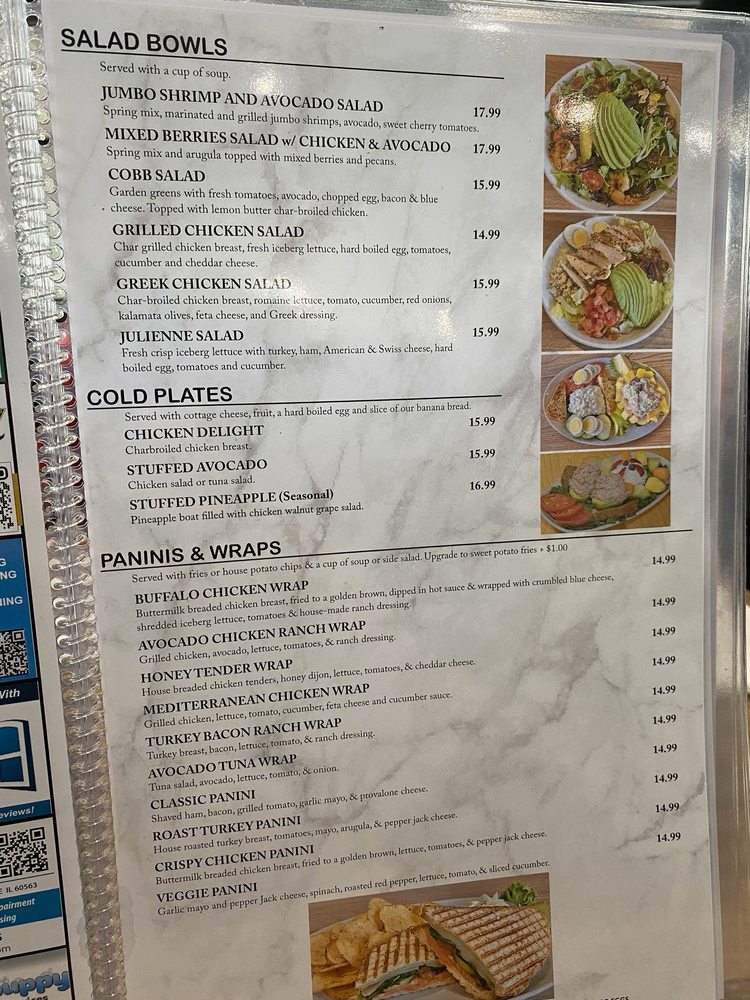 Char-grilled chicken breast, feta cheese, dried cranberries, sliced apples, and pecans over romaine lettuce and baby spinach. Dressed with honey mustard and served with a cup of soup.