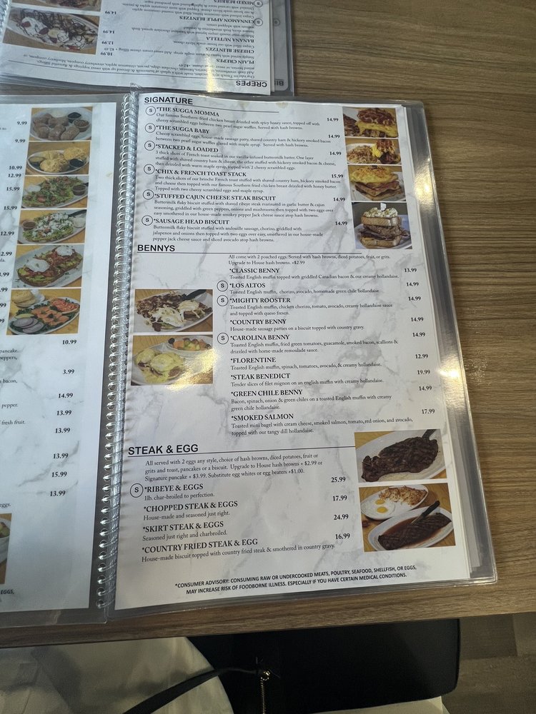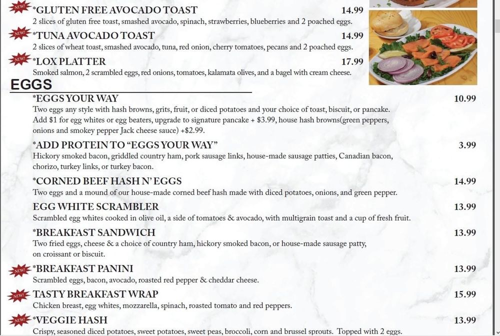 Two eggs any style with your choice of breakfast side and bread. Add your choice of protein (3.99)